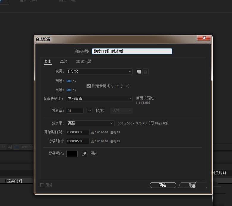 1、打开AE软件,命名故障风倒计时效果,调整相应的参数。