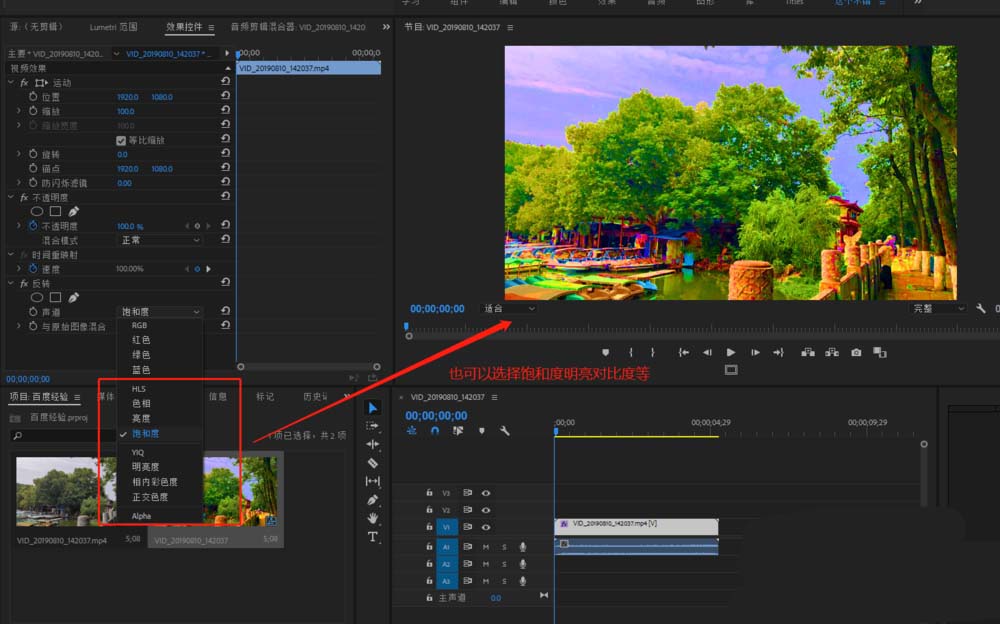 5、或者我们还可以选择声道中的饱和度、明亮度、色相等选项,这样的声道选择与RGB声道的颜色会明显不同。