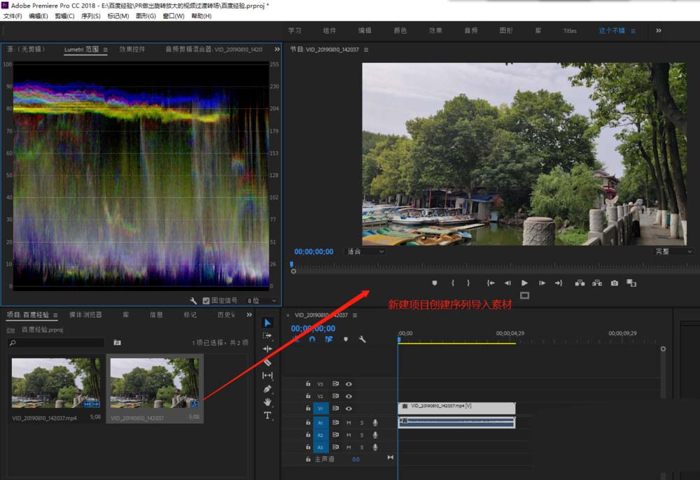 1、通过Premiere软件来新建一个PR项目,然后在项目中新建序列,并导入和使用视频媒体素材。