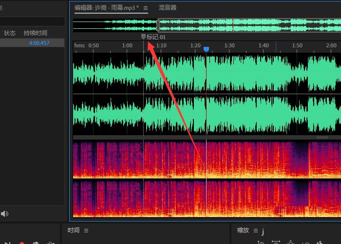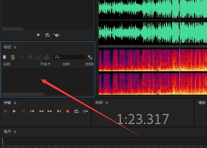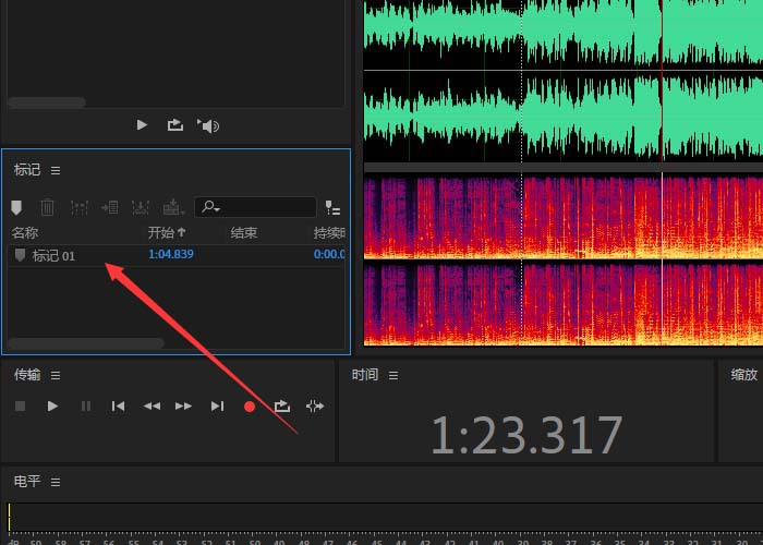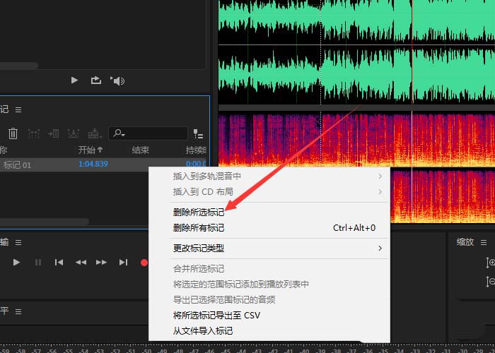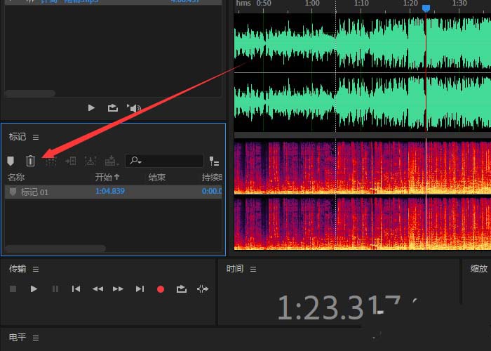 1、在Adobe Audition编辑工作区中选中要删除的标记按钮。