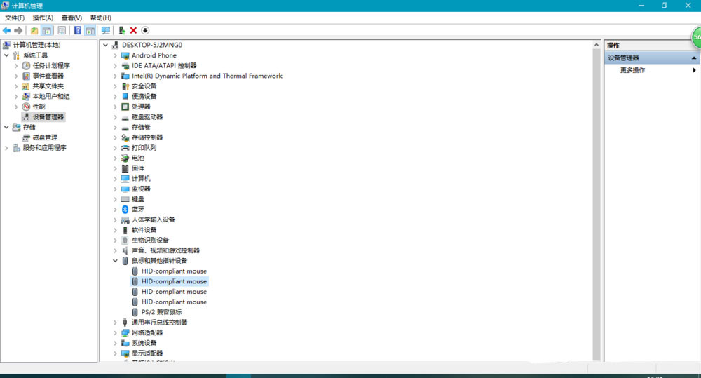 6、在弹出的“计算机管理”页面中,选择左侧列表中的设备管理器,即可看到当前计算机连接的所有设备