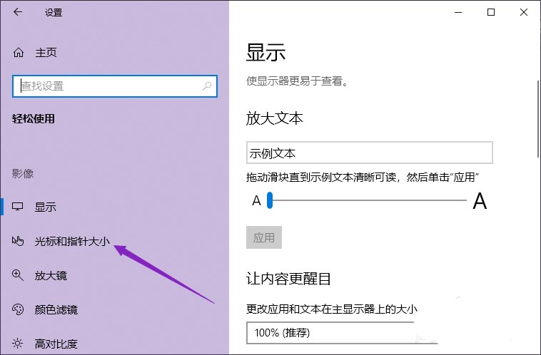 4、点击光标和指针大小。