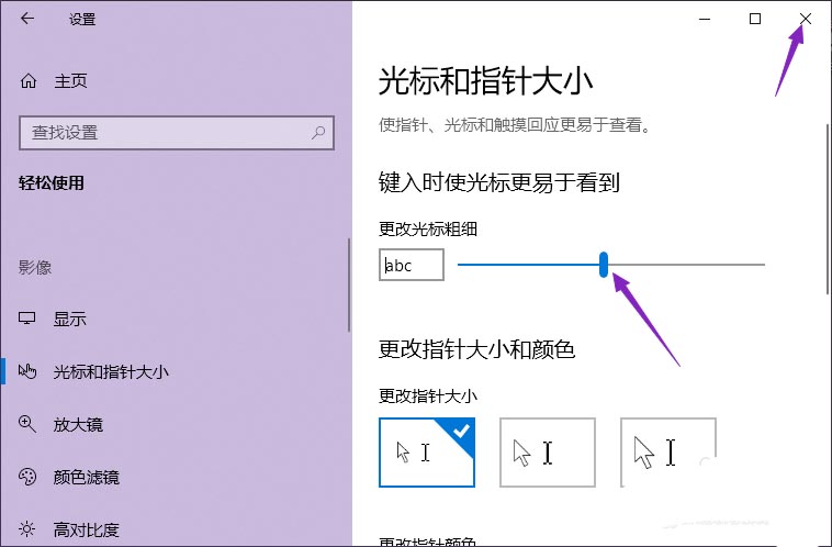 6、滑动完成后如图所示,这样我们便更改了光标的粗细。