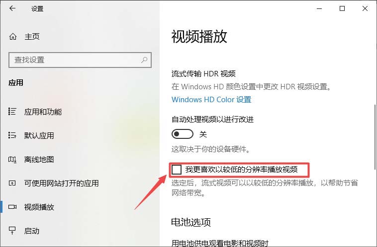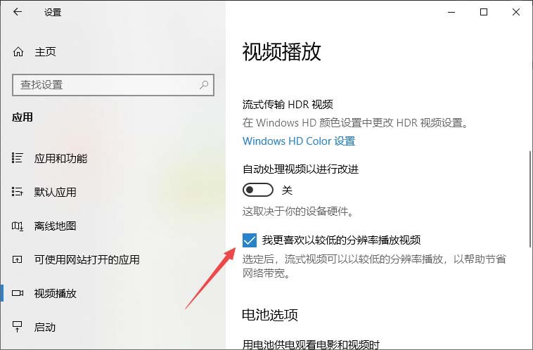 5、点击勾选上我更喜欢以较低的分辨率播放视频即可。