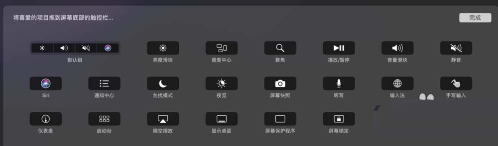 7、此时把工具拖到touchbar上,即可增加,把touchbar上的工具,拖走即可移除