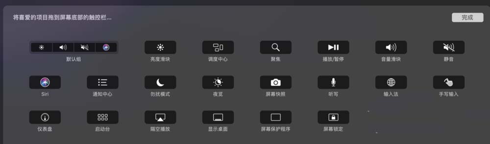 6、展开touch bar后,可看到所有的工具栏,