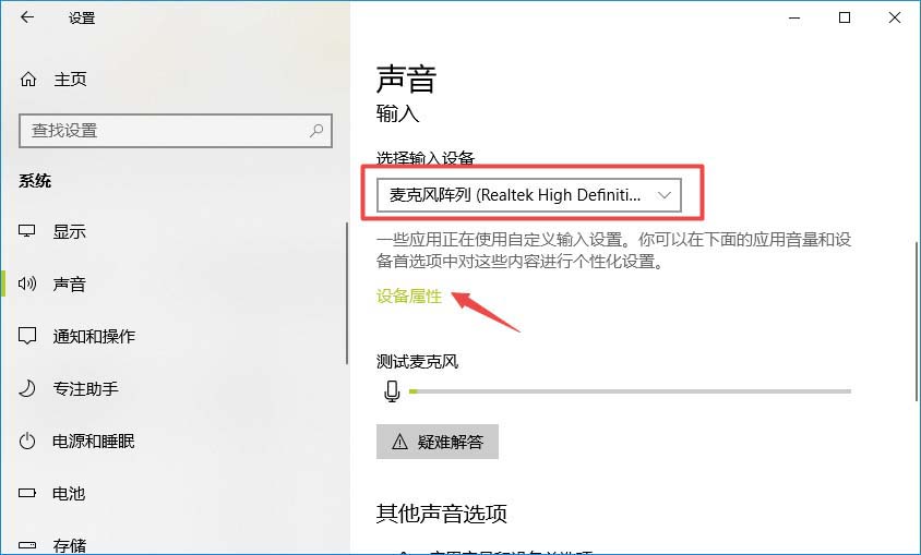 5、然后我们点击麦克风阵列下面的设备属性;