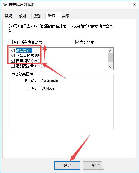 7、之后我们先点击勾选上回声消除,之后从下往上进行勾选,最后,我们点击确定就可以了。这样我们就开启了回声消除了。