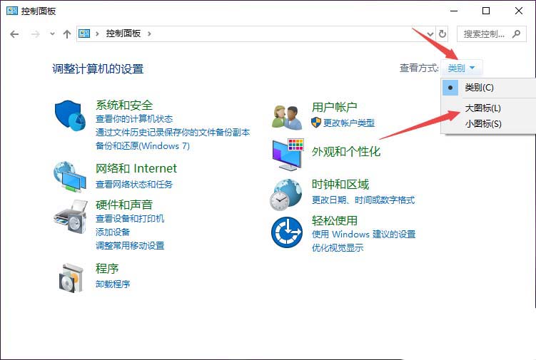 3、之后点击类别边上的下拉箭头,然后选择大图标;