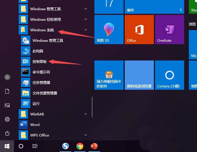 2、之后我们点开windows系统,然后点击控制面板;