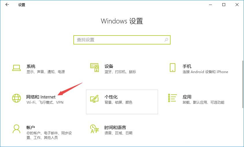 3、然后我们点击网络和Internet;