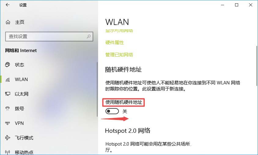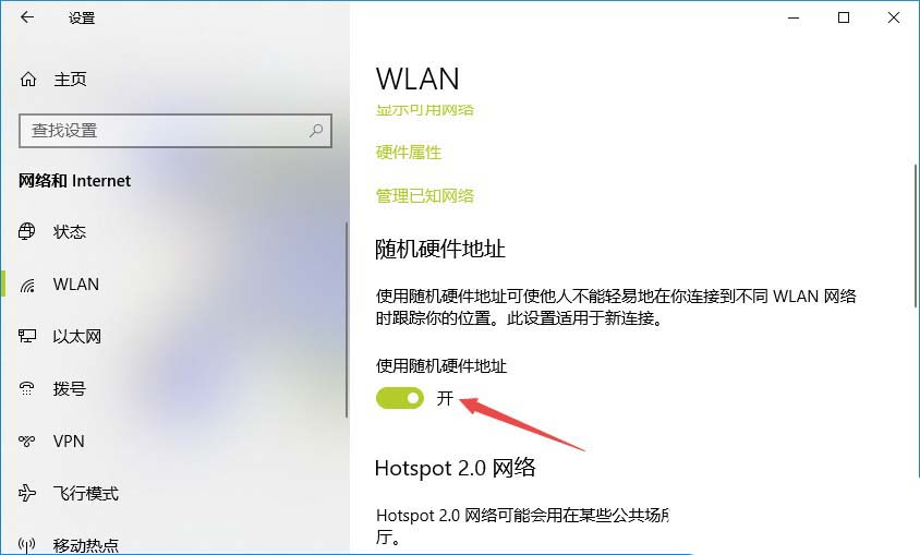 6、滑动完成后如图所示,这样我们就开启了使用随机应用地址了。