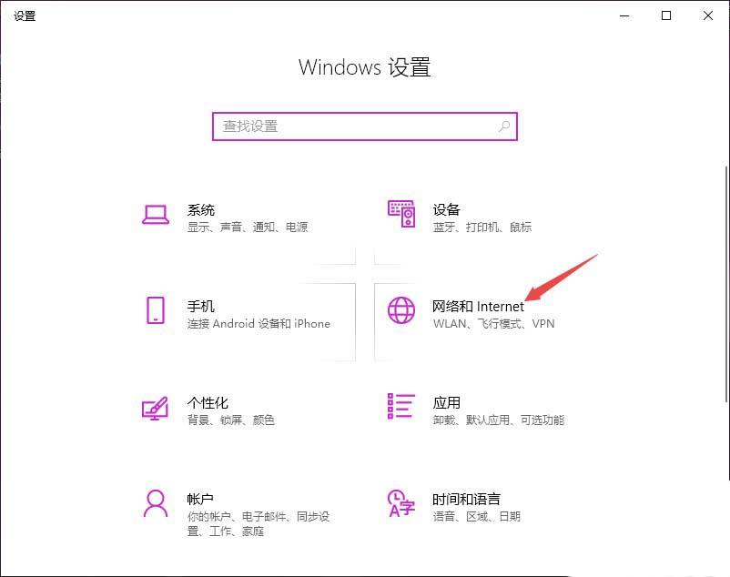 3、然后点击网络和Internet;