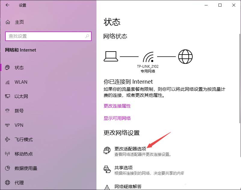 4、之后点击更改适配器选项;
