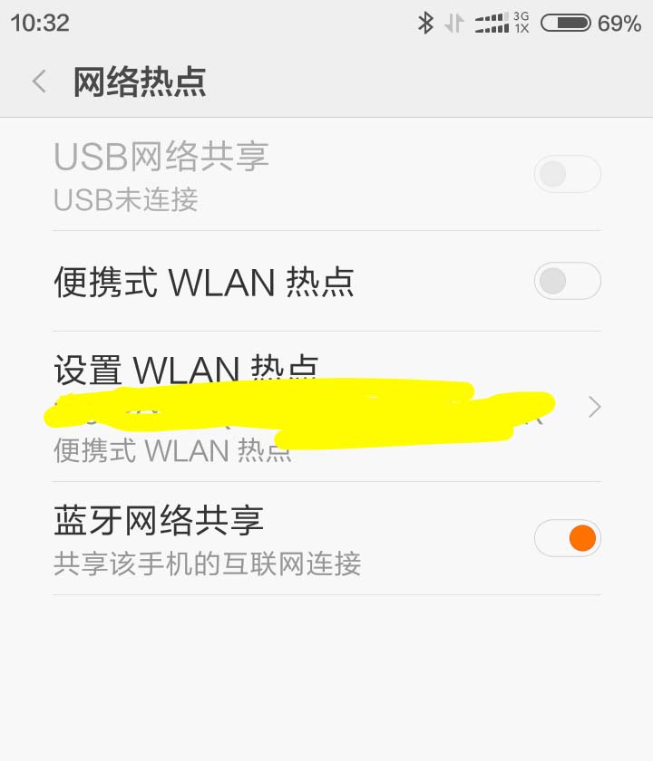 2、在‘网络热点’设置里,打开 ‘蓝牙网络’共享,