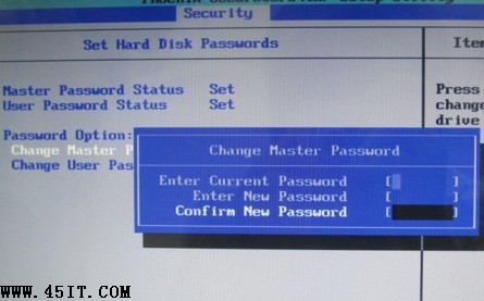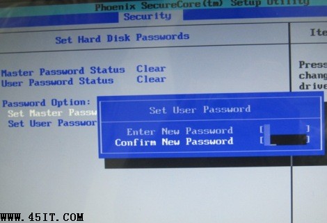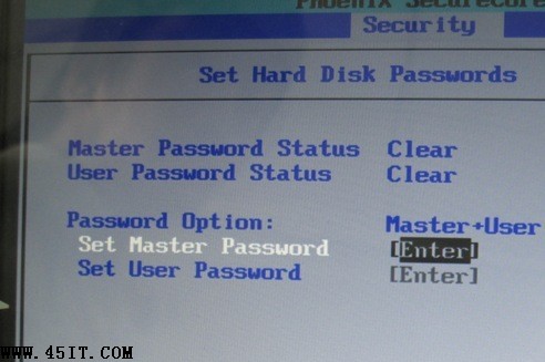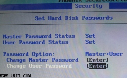 硬盘密码分为Master密码和User密 码,无法直接设置User密码