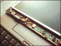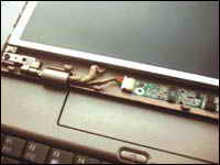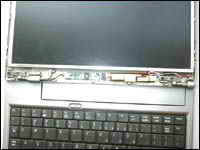 故障是出来了就是维修啊,如果是不懂电脑的人肯定就会把机器送到维修部去挨宰了。可笔者毕竟也是身经百战了,稍稍稳定了一下心情,然后开始″摆弄″起来。经过仔细发现,黑屏是黑屏了,但机器好像仍然可以启动,电源灯还是亮的,而且还可以听到机器进入系统的声音。看来不是显卡就是液晶屏的原因了,后来又排除了显卡的原因,毕竟显卡都是集成在主板上的,如果显卡坏了那主板上其它的东西还会好吗?把本本外接一个显示器以后证明笔者的判断是正确的,外接显示器能正常显示。难道真是让笔者最不想接受的原因-液晶屏损坏,大家都知道笔记本液晶屏的价格吧,让我介绍一下吧?14.1英寸的屏要三千多,像笔者的12.1英寸屏稍微便宜点,但也要两千多。如果是液晶屏坏的话可能有两种情况,第一种就是物理损坏,表面应该可以见到裂痕、凹坑等等创伤。如果是这样,需要更换整张玻璃基板才能够解决,那笔者可真要哭了。第二种情况就是内部元件的故障,如果是这样的话维修起来还是比较方便的。到底是哪一种情况呢?笔者围着本本转了几圈,没有发现液晶屏表面有任何损伤,按照推理液晶屏应该没什么物理损伤。那有可能就是第二种情况了,最后经过仔细观察终于有所发现,虽然屏幕是黑的,但是在有光线的时候从侧 面看或者把液晶屏扳到180度的时候通过仔细观察还是可以隐约见到模糊的图像,这样的话数据传输显示这块还是没有问题的。只是液晶屏的背光没有了,看来原因是出在液晶屏的背光上。根据经验初步判断,不是电源接触的原因,就是背光灯已经损坏或者液晶屏高压电路板出现问题。