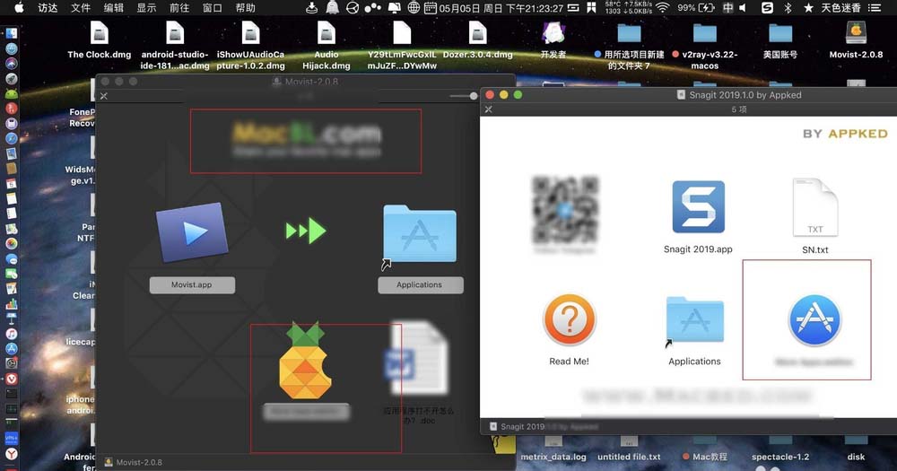 2、快捷键cmmand+delete删除,那么就可以做下面的一个步骤了。图二的左边的应用是国内的应用,就是修改后的应用,右边的原版的应用,未曾修改了 。这里你发现了什么,替换了,替换了很多文件。等于国内的站长把国外dmg搬过来,然后重新打包。所以很多经过国内打包的软件,都是有问题的。缺斤少两,解决的方法就是删除了,重新下载。不信请测试。