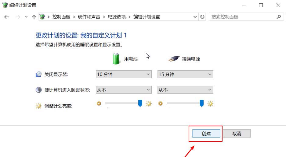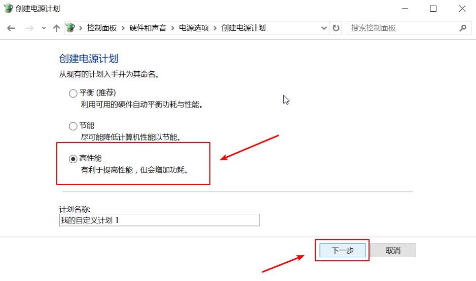 8、创建电源计划——选择“高性能”———下一步———创建(7590,G3..有的机子没有高性能的选项直接右下角🔋图标,然后拉到最右边的最佳性能,看第8步的图4)