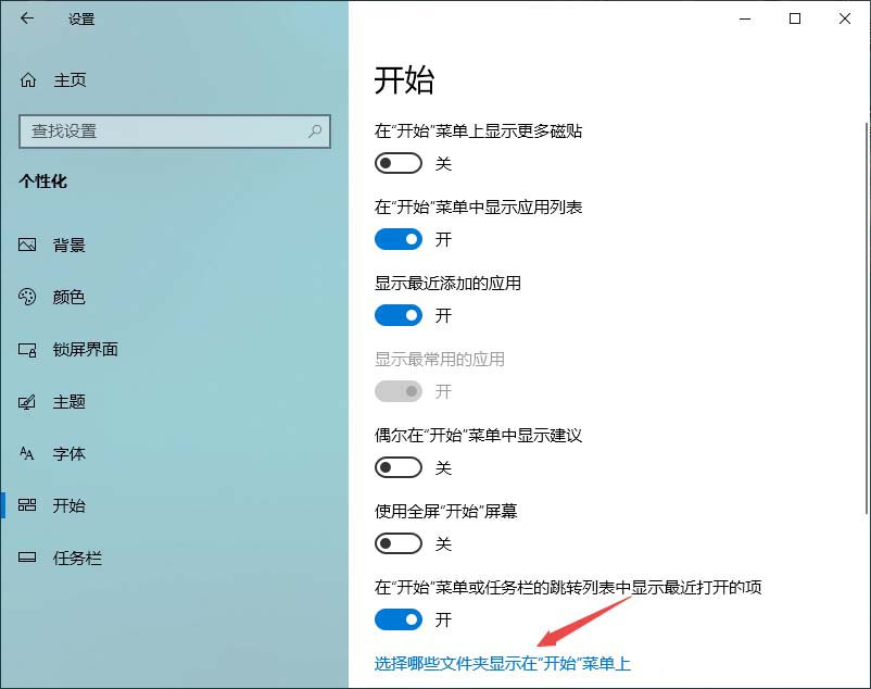 5、然后点击选择哪些文件夹显示在“开始”菜单上;