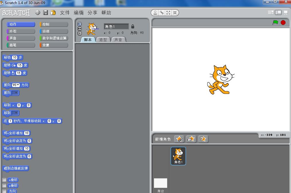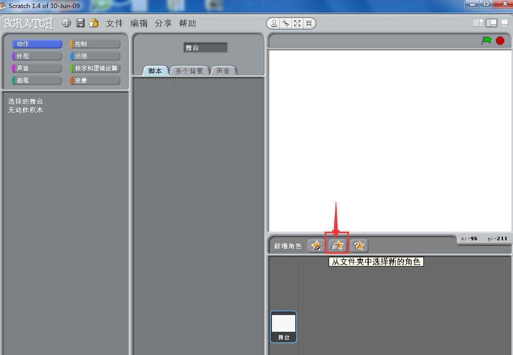 1、打开软件scratch1.4,进入它的主界面,没有的朋友可以下载安装哦;