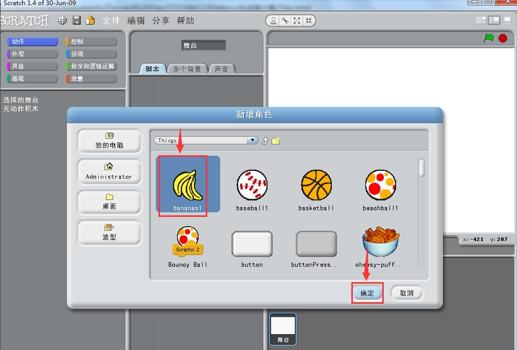 5、在scratch1.4中创建好一个香蕉角色;