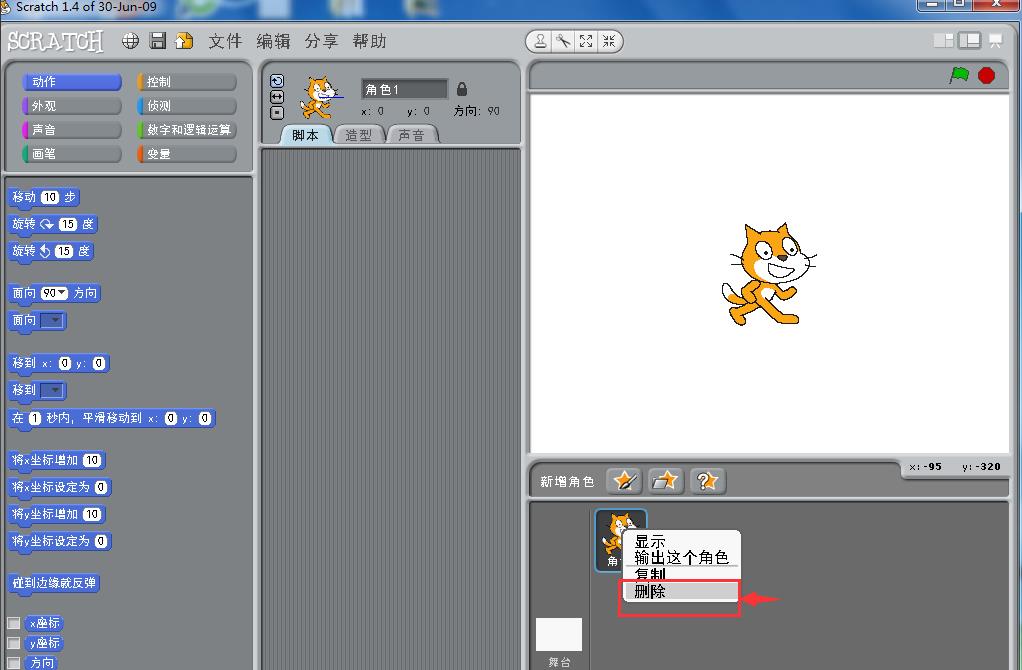 2、在小猫上按右键,将小猫删除;