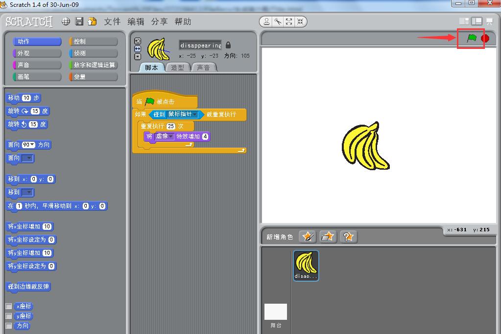 以上就是scratch实现香蕉碰到鼠标就消失的动画效果的教程,希望大家喜欢,请继续关注武林网。