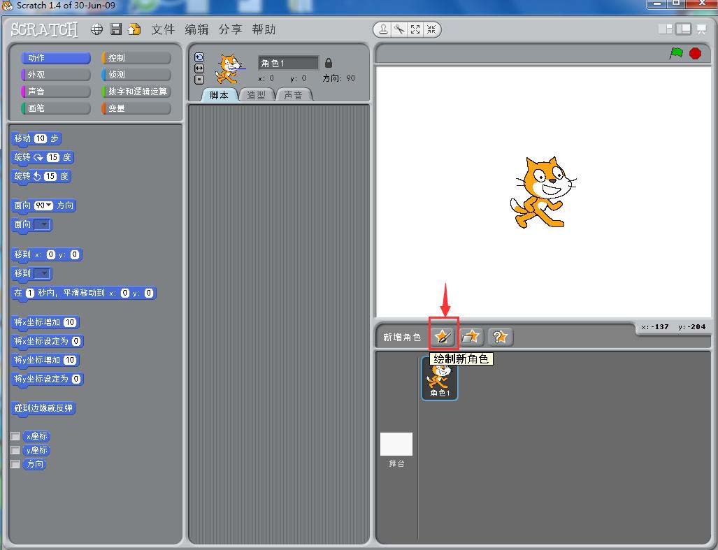 1、打开scratch1.4,进入其主界面;