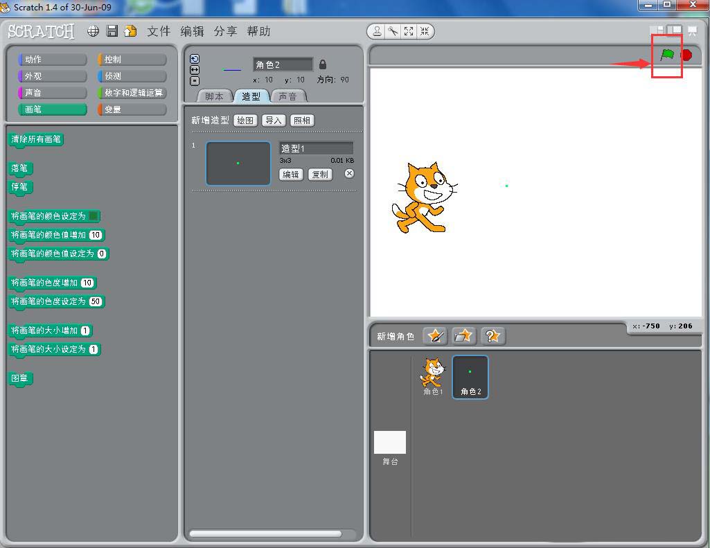 4、点击绿旗执行程序;