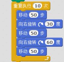 4、重复执行10次,移动100步,旋转60度。点击测试。