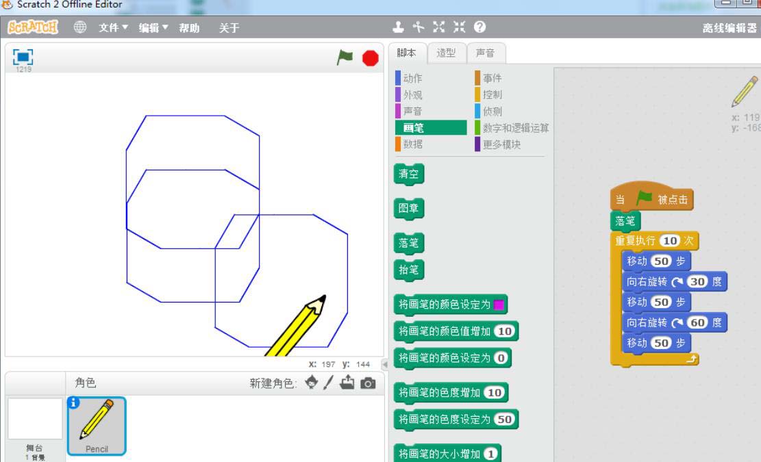 scratch怎么绘制正方形及对角线?