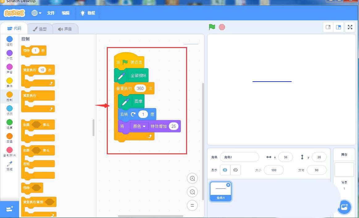 scratch图章工具怎么控制圆形的大小?