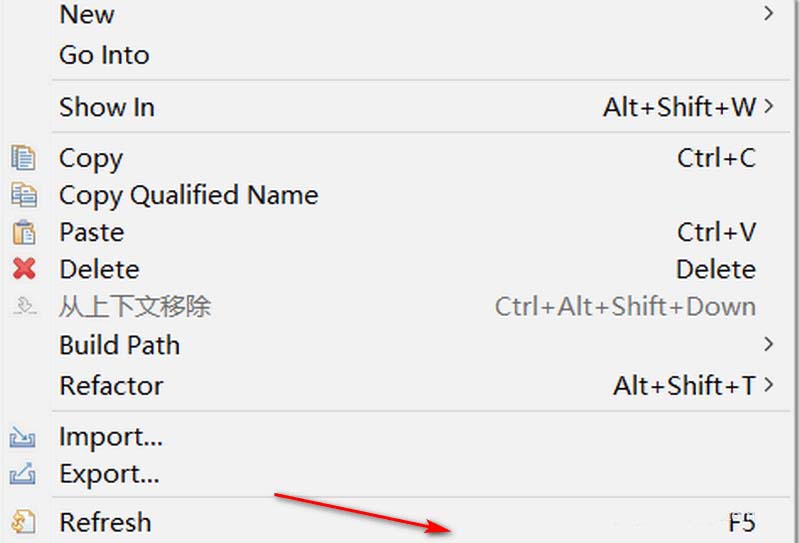 5、我们只需要右击项目,点击【Refresh】选项,刷新一下即可。