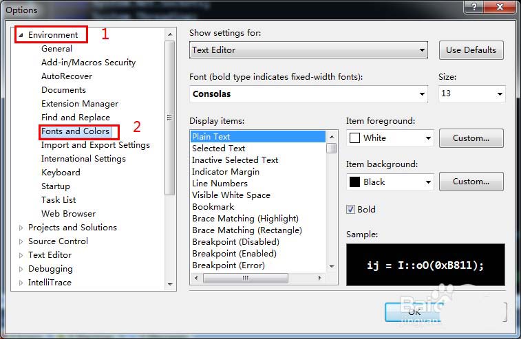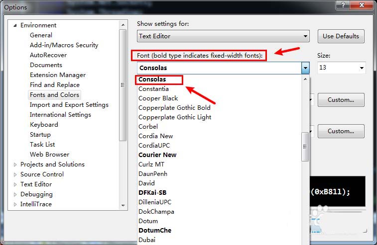 VS2010默认的字体比较难看,可以自行更改对应的等宽字体,同时更改字体大小,使字体看起开优美大方,便于阅读。