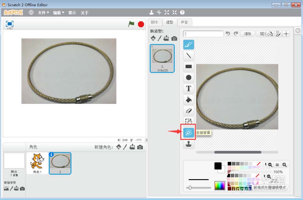 scratch中从本地文件夹上传的角色,有时带有背景色,放在scratch的舞台上会不太协调,想要消除图片的背景色,该怎么操作呢?下面我们就来看看scratch去背景色的教程。