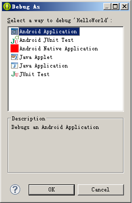 选择第一个 :OK,这是会弹出一个选择模拟器的对话框,(记得要提前把模拟器启动起来,不要关闭)