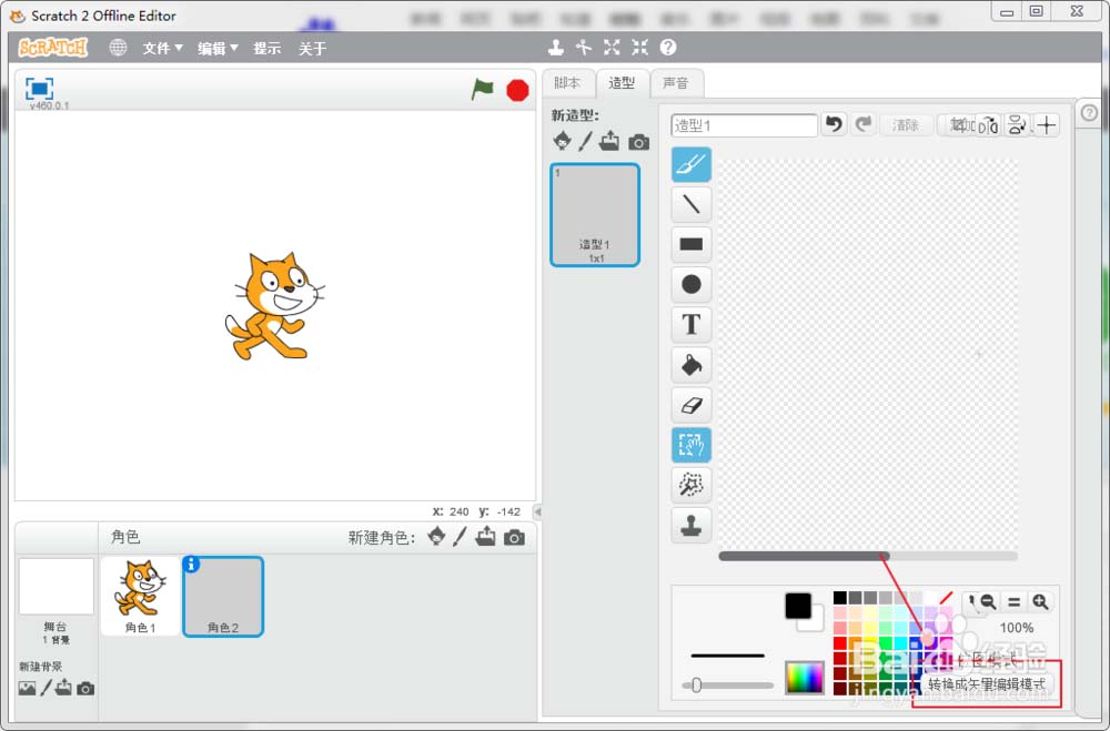 3、最关键的一步:点击右下角的“转换到矢量编辑模式”。