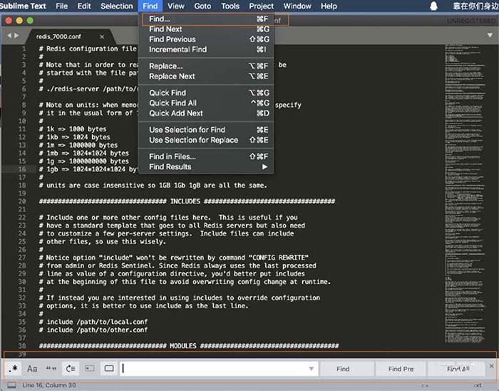 1、首先找到个带注释的配置文件作为演示,这里的源文件采用redis的配置文件做演示