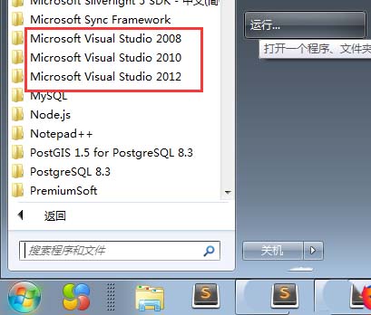 1、首先我们得先安装了至少一个版本的Visual Studio软件,如图所示,小编电脑上安装了2个版本的Visual Studio,分别是2010/2012。2008版本是自带的。