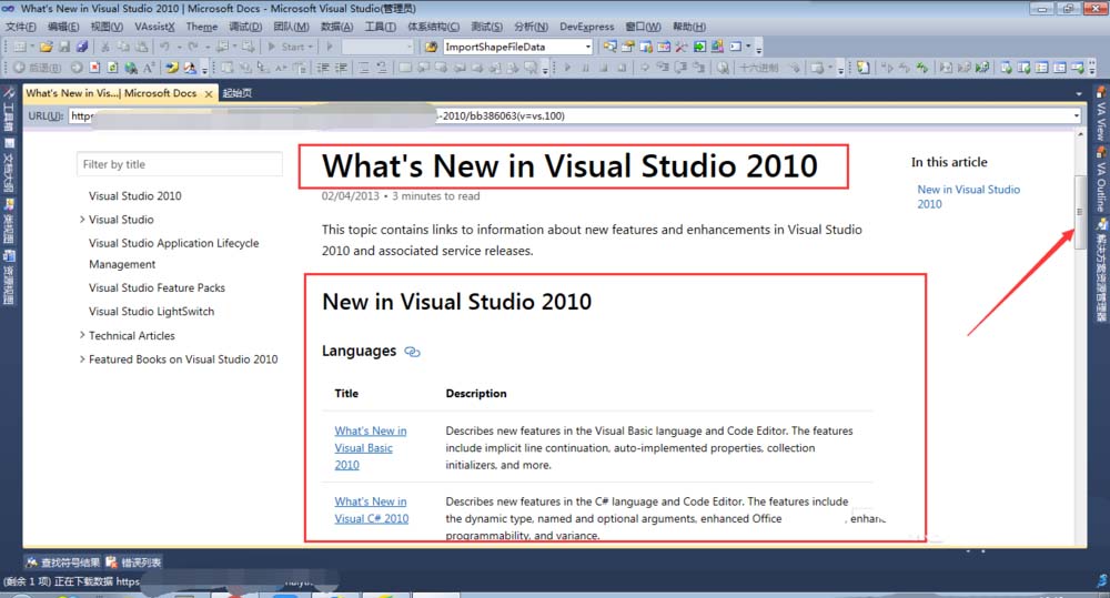 5、打开后看到如图所示的内容,可以看到这里详细介绍了Visual Studio2010 这个版本的更新内容,如果要了解它与以往各个版本的区别,直接查看这里的文档即可。