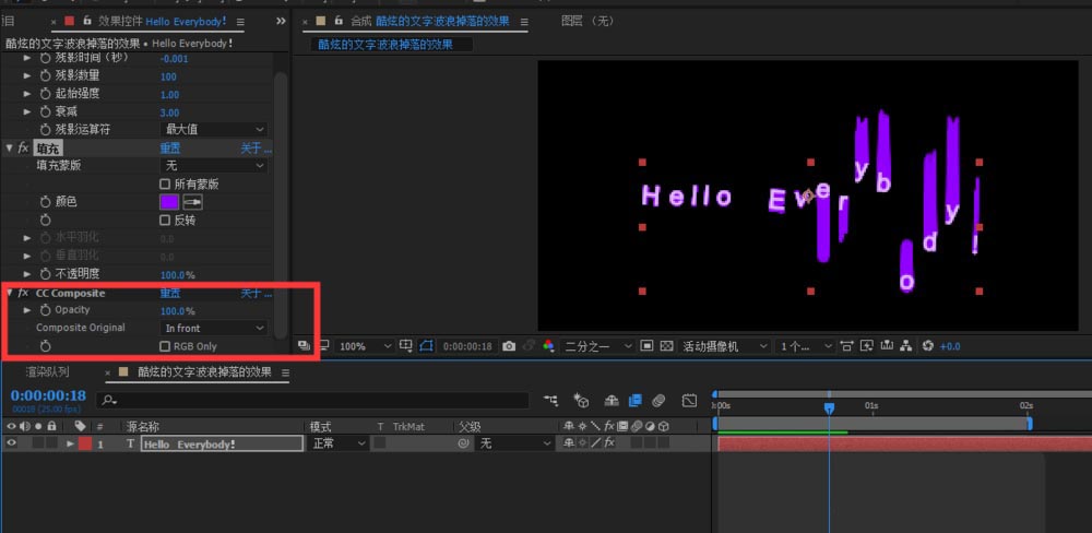 4、我们添加CC Composite效果,将颜色只应用于残影上;可以设置成自己想要的颜色;
