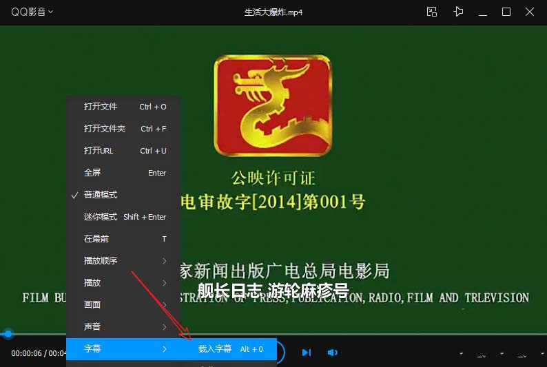 4、如果直接打开视频没有自动加载字幕,我们右键点击播放界面,然后选择字幕——载入字幕