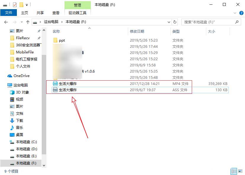 2、然后,我们需要将ass字幕文件和视频修改为相同命名,如图所示,字幕文件和视频文件都为相同命名