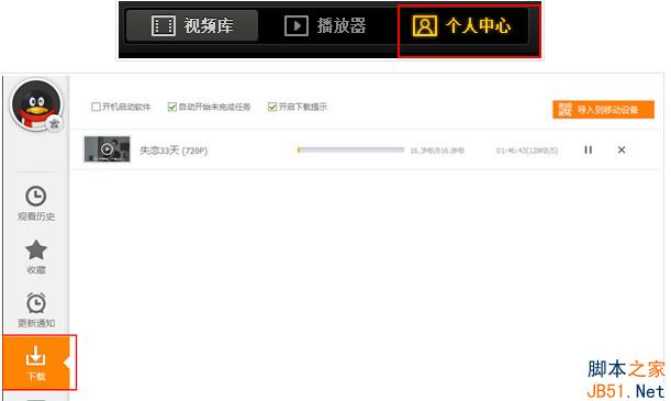 3、下载列表我们可以通过程序界面上方的个人中心查看