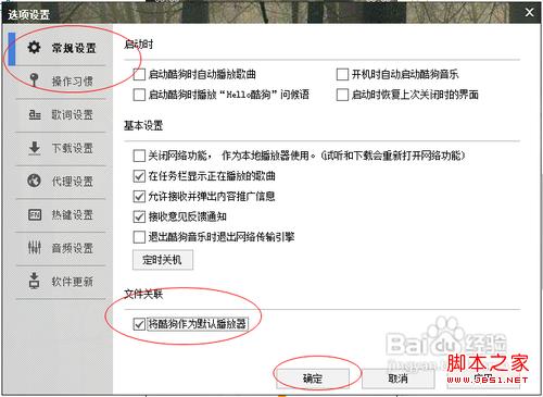 然后在常规选项卡中勾选使用酷狗浏览器作为默认播放器的选项,最后点击确定按钮即可,如图所示: