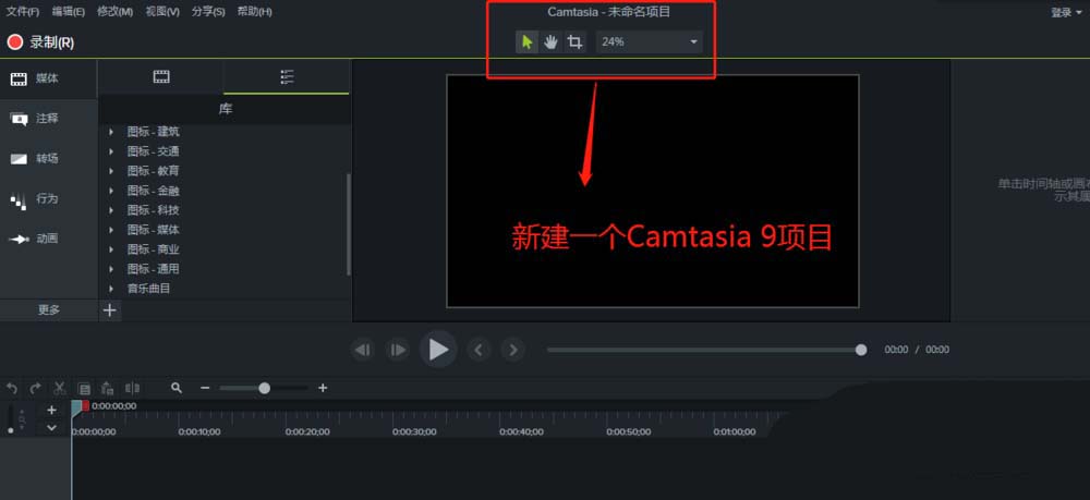 1、找到并启动Camtasia 9软件,新建一个空白Camtasia 9项目。