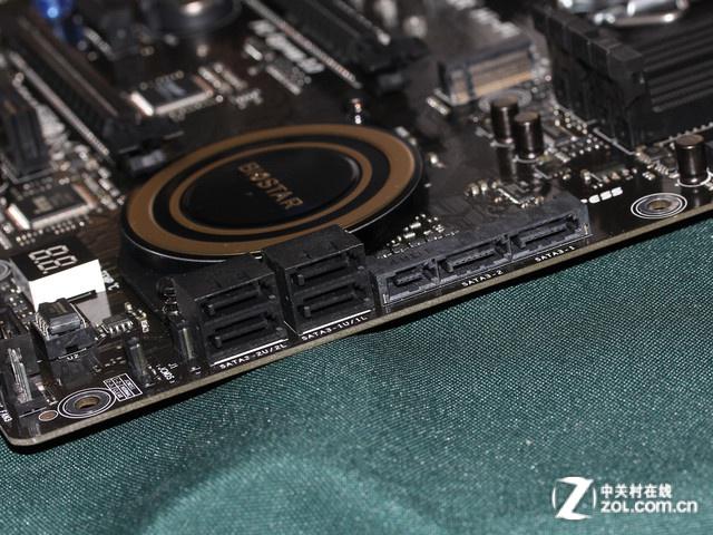 磁盘接口方面,主板原生提供4个SATA3.0和1个SATA2.0接口,并支持各类磁盘阵列功能,并提供最高SATA6.0Gbps传输速度。