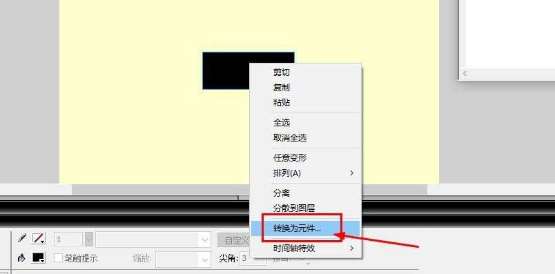 3、使用鼠标点击长方形,右键选择转换为元件,或使用快捷键f8