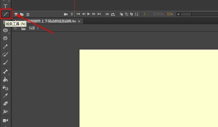 2、在工具栏找到线条工具,按住shift键后在舞台绘制一条直线,如图所示